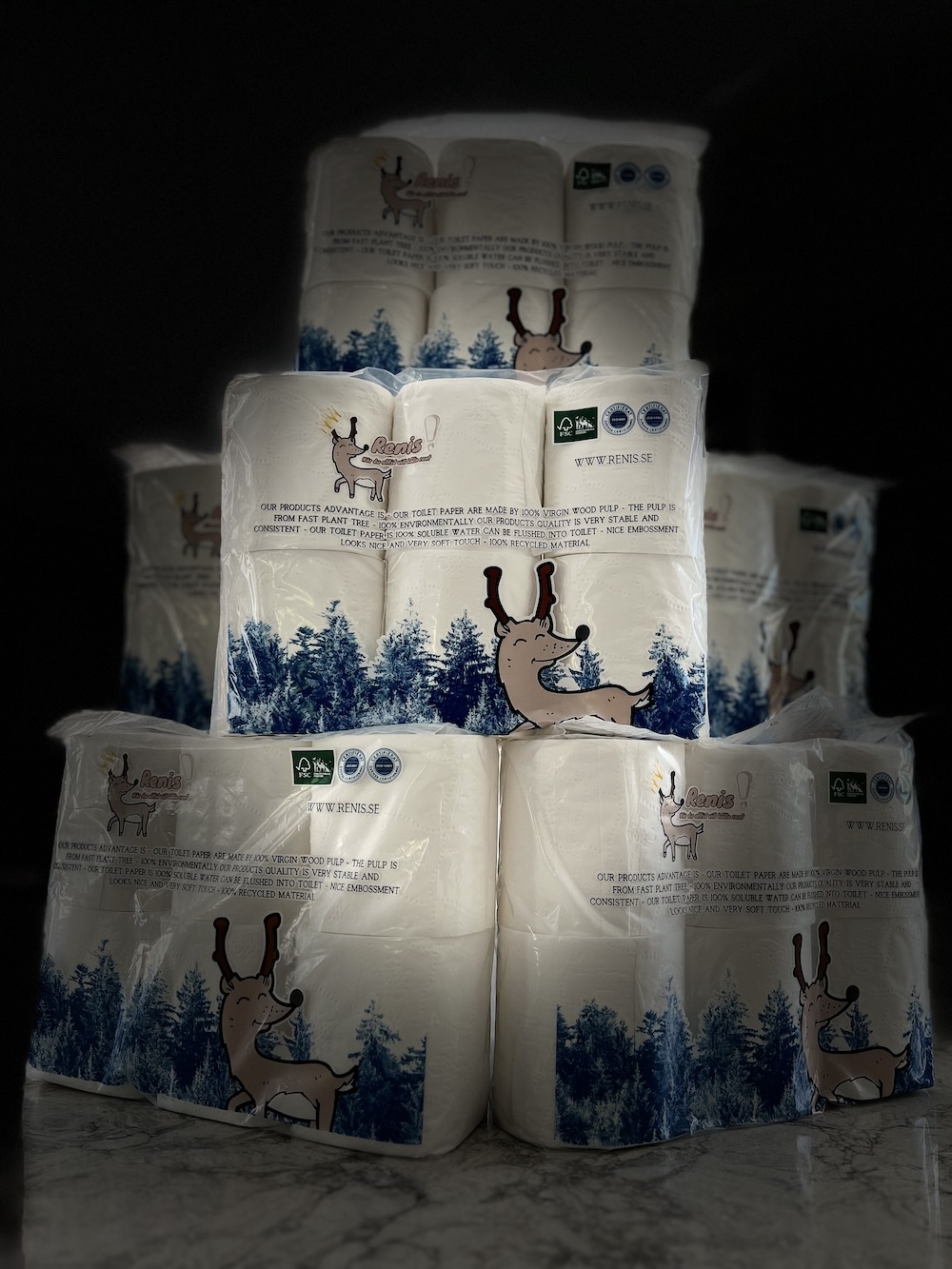 Vi på Renis är medvetna om vikten av att ta hand om vår planet. Därför strävar vi efter att vara miljövänliga i vår produktion och förpackning. Vårt toalettpapper är tillverkat av återvunnet material och är certifierat för att vara miljövänligt. Genom att välja Renis toalettpapper kan du känna dig trygg med att du gör en hållbar och ansvarsfull val för dig själv och för framtida generationer.